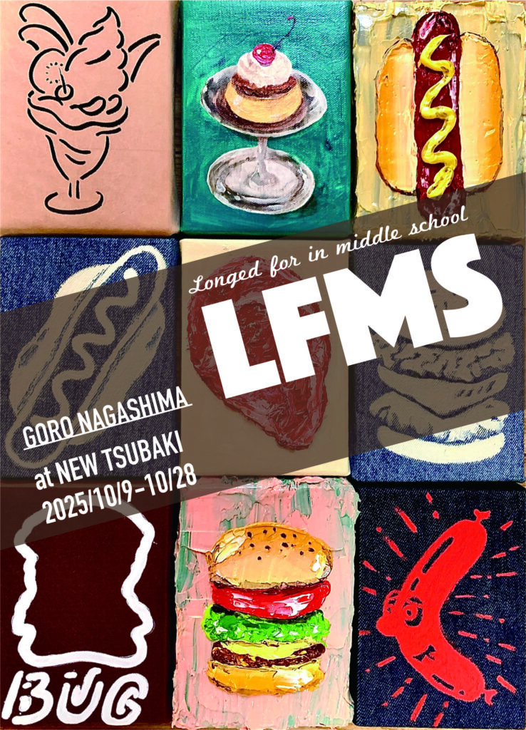このたび下北沢のカフェ&バー・アートギャラリー「ニュー椿」では、アーティスト/イラストレーターとして活動する長嶋五郎によるエキシビション「LFMS (Longed for in middle school)」を、10月9日(木)より開催いたします。