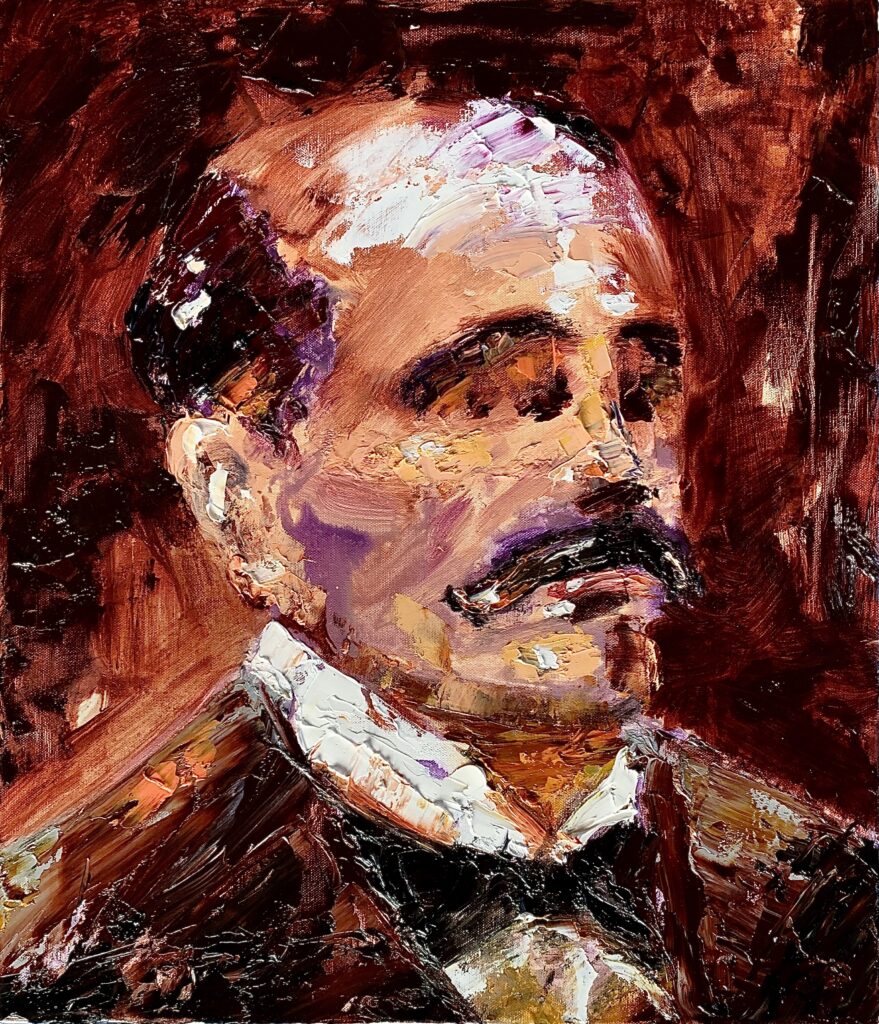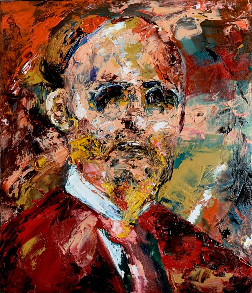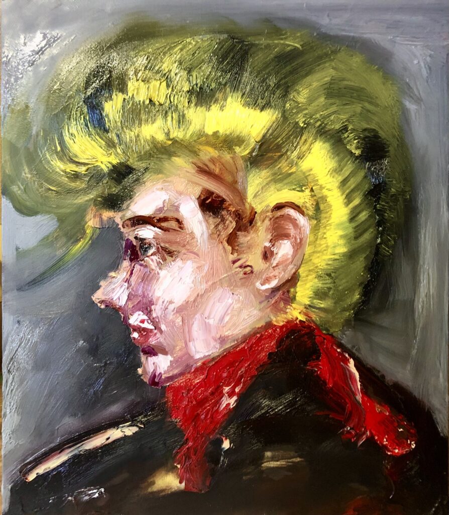 20年振りの油絵の具とペインティングナイフを手にして塗りたくっていった。
